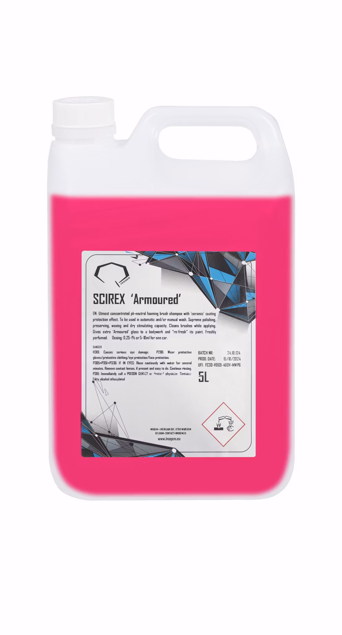 Scirex "Armourd" är ett SiO₂-baserat fordonsschampo, berikat med avancerade polymerer som rengör effektivt samtidigt som det ger lacken en hydrofob, skyddande och glansförstärkande yta. Den keramiska teknologin skapar en tydlig non-stick-effekt som gör att smuts och vatten får svårt att fästa.
