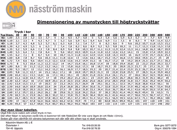 Tänk på att beställa med rätt nippel mot ert handtag och rätt Munstycke. Det ligger med en bild här där ni kan läsa ut vilket munstycke ni skall ha. Kolla vad ni har för vattenflöde och tryck på er tvätt sen är det att kolla i listan vad just ert munstycke heter. De första 2 siffrorna är spridningsvinkeln. Normalt är 15 graders.